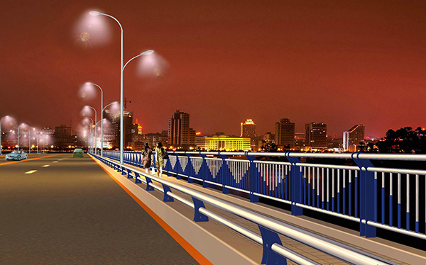 橋梁燈光護欄使用橋梁兩旁的護欄鋼管作為LED燈具的載體,解決橋面防護與照明雙重需...